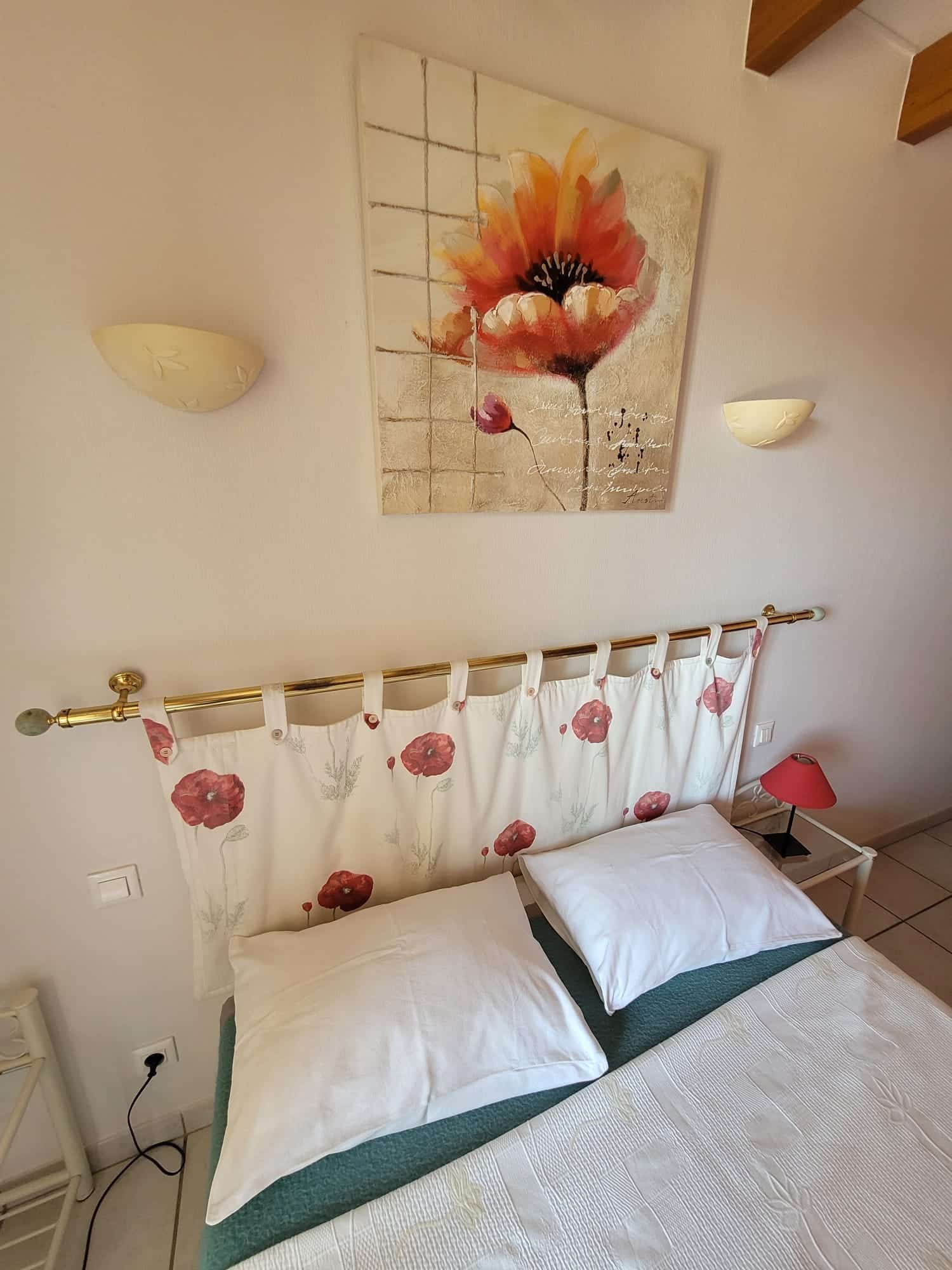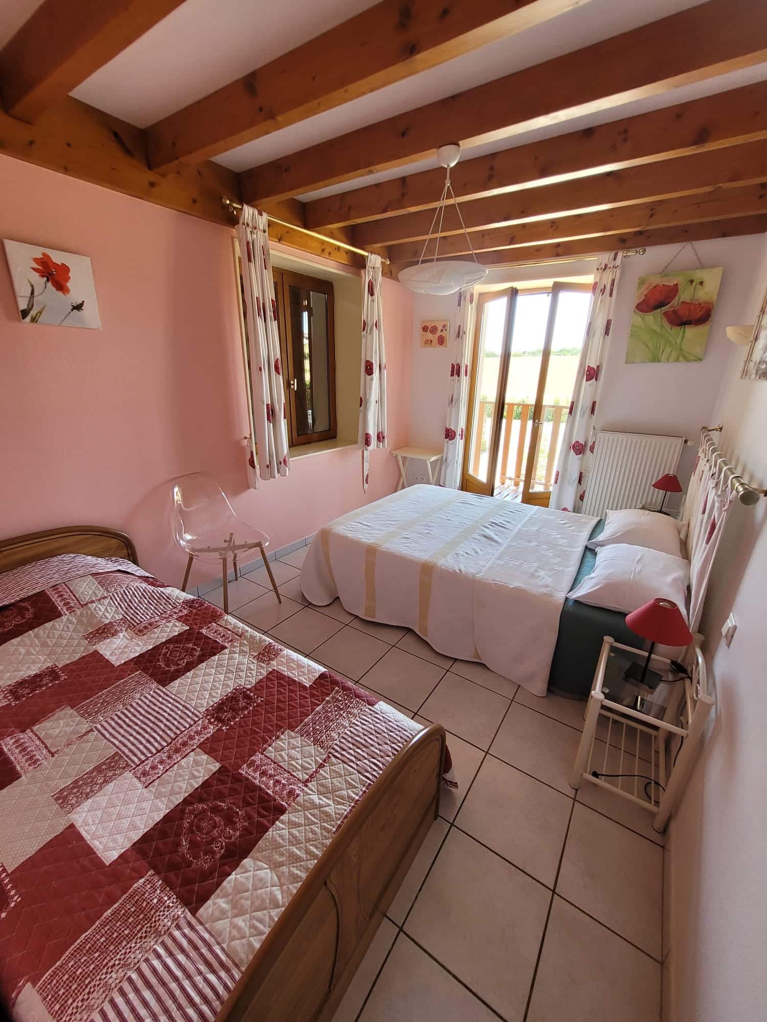 À l’étage, cette chambre allie confort moderne et charme authentique. Lumineuse et paisible, elle invite à la détente, aux moments de lecture ou à profiter simplement de la douceur de la campagne environnante.